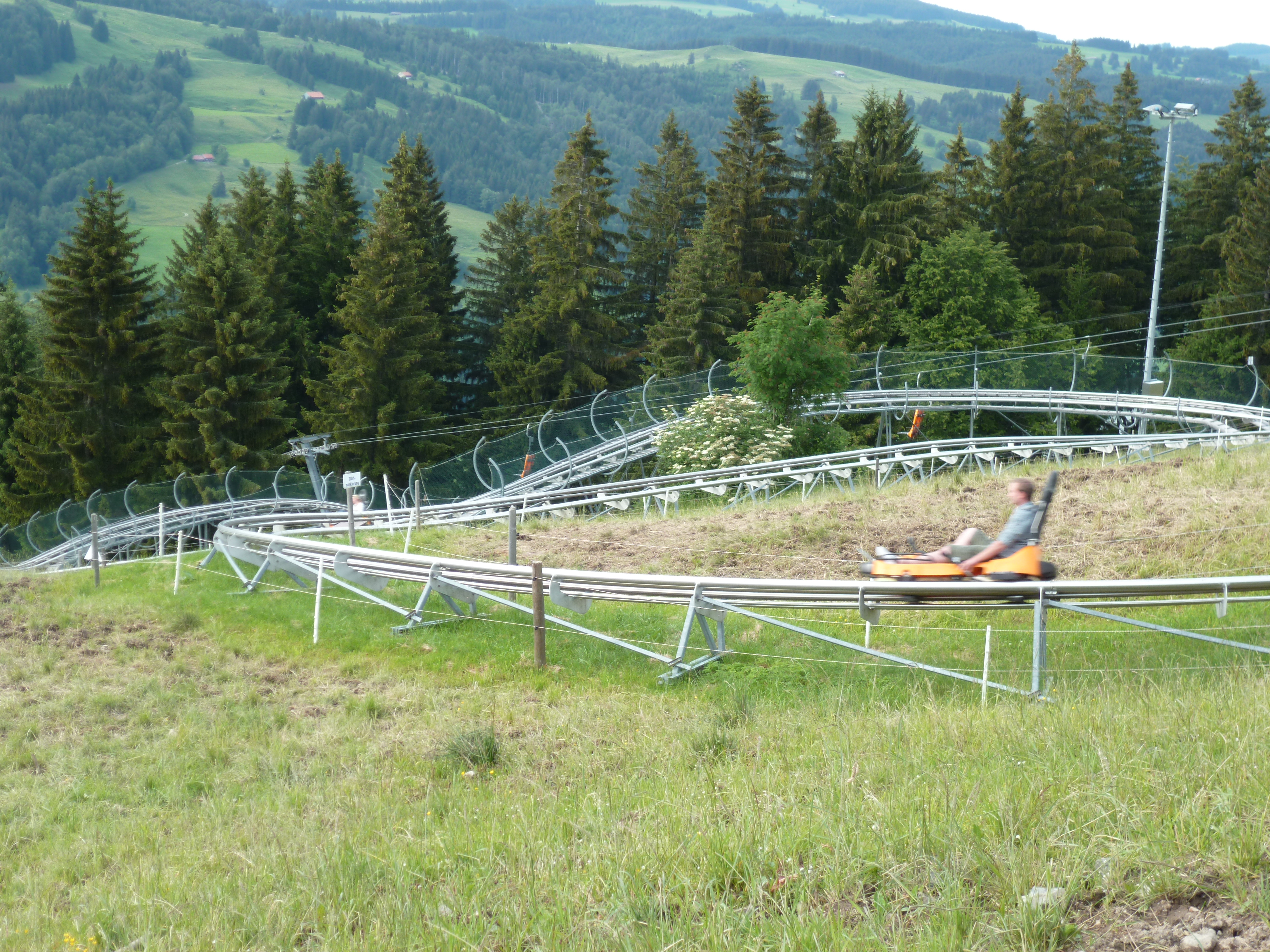 - Alpsee Bergwelt : c’est une sorte de luge d’été sur rails. 3kms de descentes et de dénivelés dans les sapins. Sensations fortes assurées. Petit conseil : lorsque que vous voyez des panneaux sur lesquels il est marqué « Bremsen », cela veut dire « freiner » en allemand. Bien évidemment, la première fois que j’ai fait la descente, avec mon allemand pourri de l’époque, je ne savais pas ce que cela voulait dire… Je me suis fait quelques frayeurs. Pour les moins téméraires, il existe un autre type de luge d’été ressemblant à un bobsleigh et qui est moins rapide.