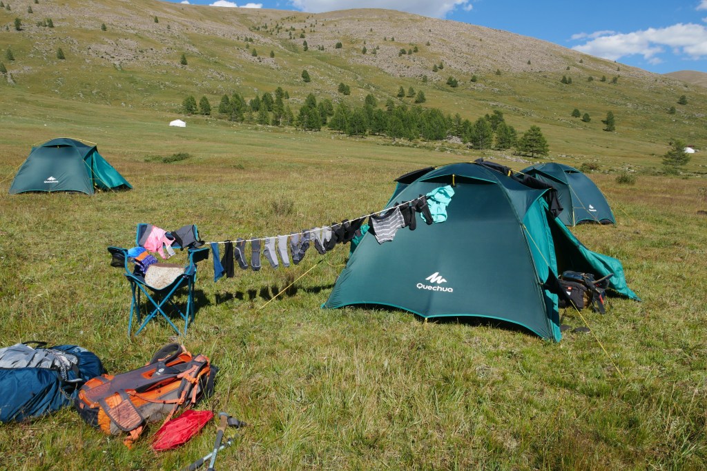 - Un bon sac de couchage et un drap de soie. J’ai en plus opté pour un petit oreiller, gonflable et très compact, pour avoir un peu plus de confort. Les matelas (et les sacs de couchage aussi au final) étaient fournis par Horseback Mongolia.