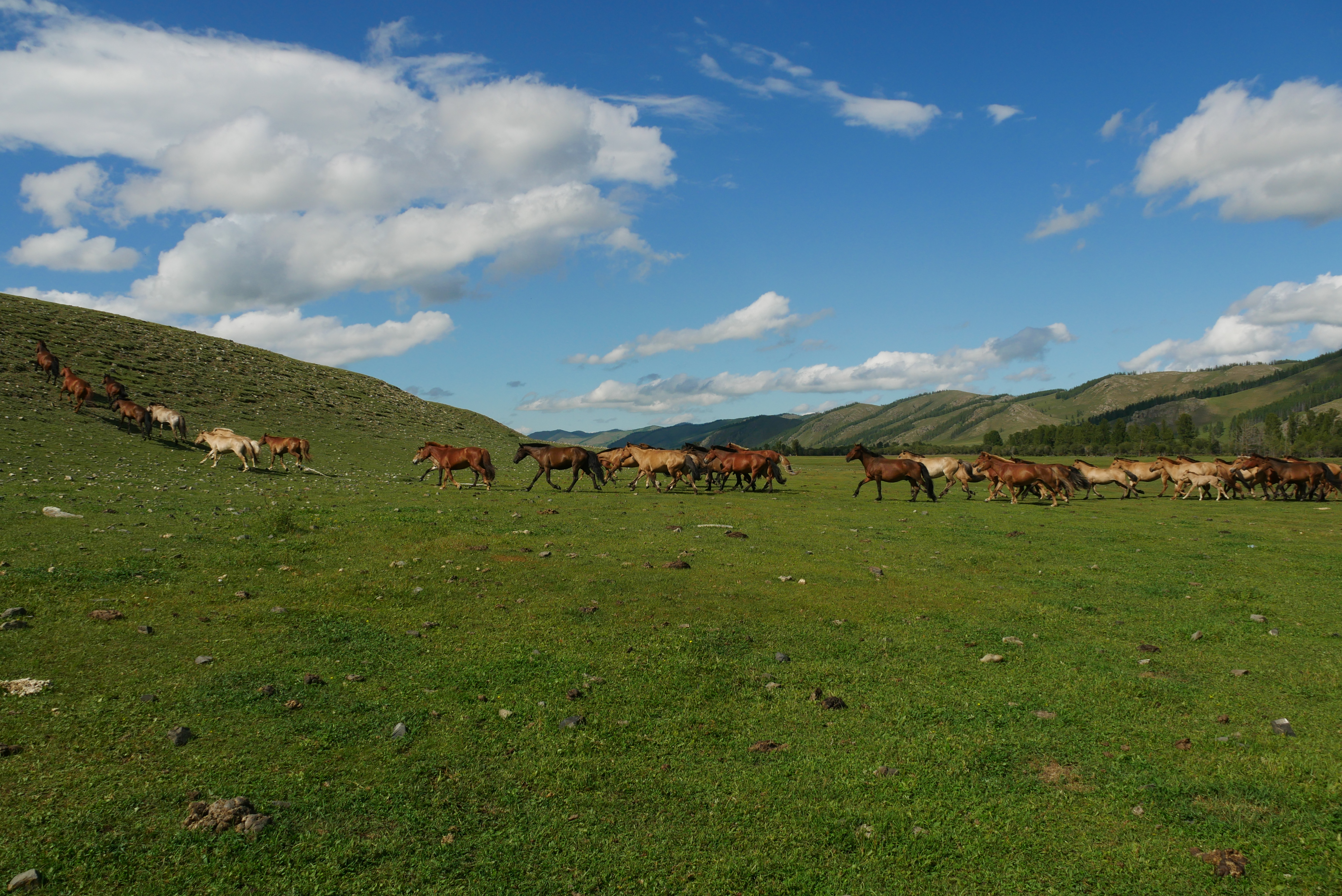 J’avais ce pays en tête depuis 6 ou 7 ans mais je ne me souviens plus d’où m’est venue cette envie mongole. Peut être un épisode de « Rendez-vous en Terre inconnue” ou peut être juste une vidéo qui a croisé mon regard un jour, mais en tout cas j’avais cette image en tête des grandes étendues d’herbes doucement vallonnées, avec les troupeaux de chevaux la traversant au galop. Il y a quelques années, en regardant un peu plus à quoi ressemblait ce pays, j’ai découvert les autres régions, toujours aussi natures et dépeuplées : au nord-ouest les forêt de sapins autour du lac Khovsgol, à l’extrême ouest les très hautes montagnes de l’Altai, au sud le fameux désert de Gobi, juste au nord-est de la capital le magnifique parc de Gorkhi-Terelj et enfin, bien sûr, la région du Khangaï et ses steppes. Vu la taille du pays, si on voulait tout faire, il aurait fallu partir au moins 2 mois. A cause (ou grâce) à cette problématique de congés bloqués, 2022 était enfin l’occasion de parcourir la Mongolie. Je n’avais pas envie de faire un voyage où on monte dans la voiture, on descend faire sa photo et hop encore de la voiture jusqu’au prochain point touristique. J’avais envie d’explorer tout ce que j’avais pu voir dans mes recherches. Mais voilà, congés et budget ne sont pas infinis, il a fallu faire un choix.