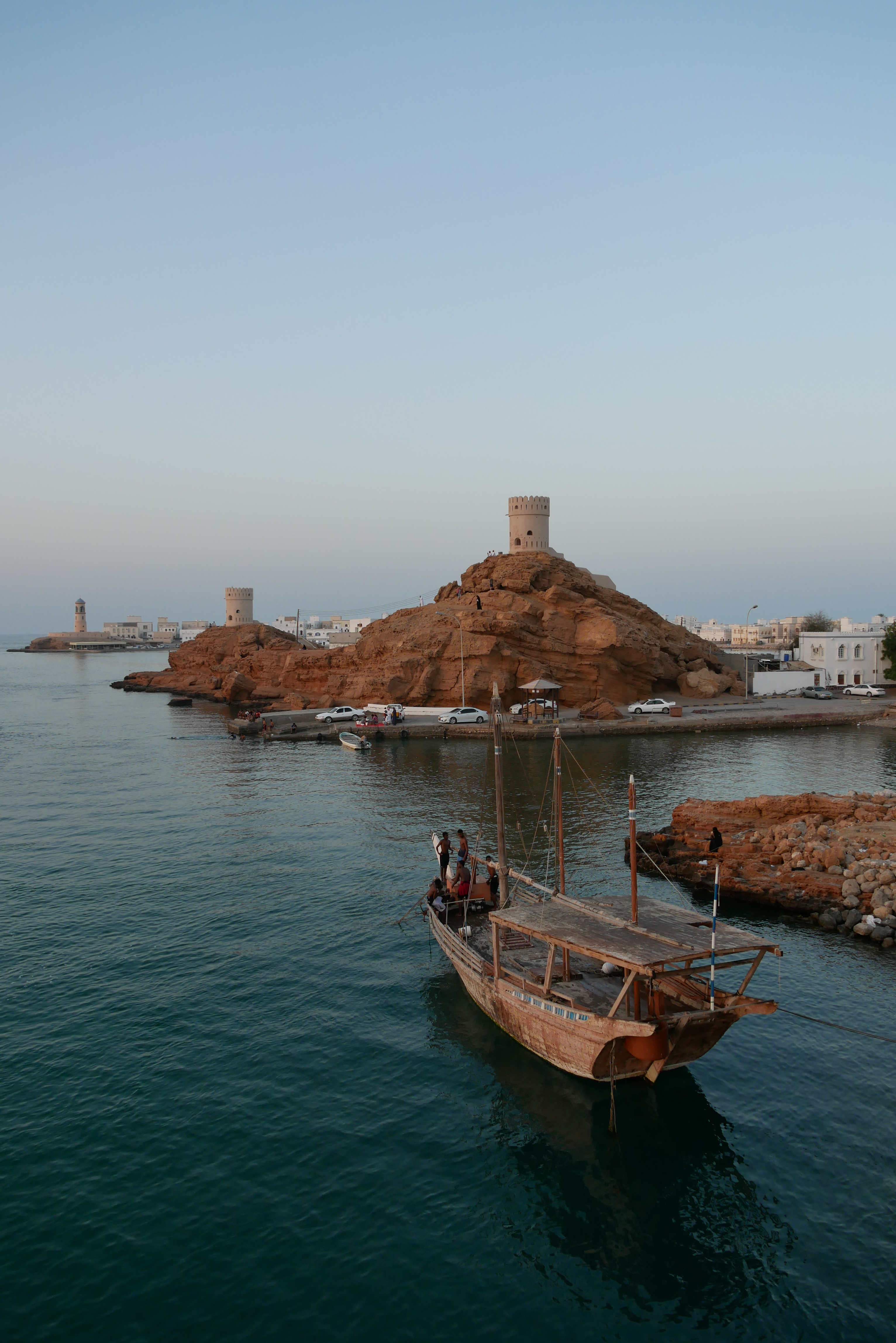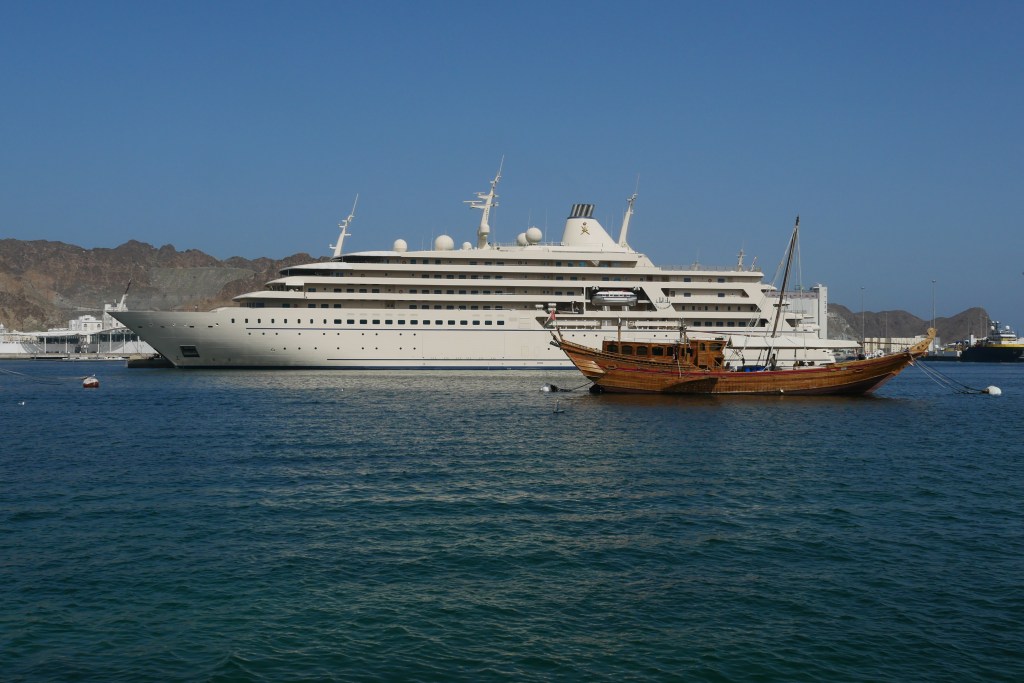 - Balade le long de la corniche : Elle est située le long de la mer et est très agréable. Elle démarre au niveau du marché aux poissons (vous pouvez d’ailleurs vous garer sur le parking gratuitement) et va jusqu’au vieux Mascate. Durant cette balade, vous pourrez observer des Dhows (bateaux traditionnels omanais en bois), les magnifiques yachts du Sultan et également des abris artistiques.