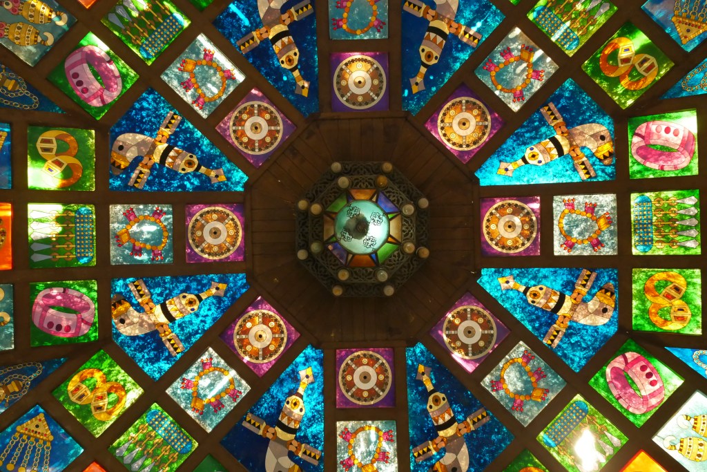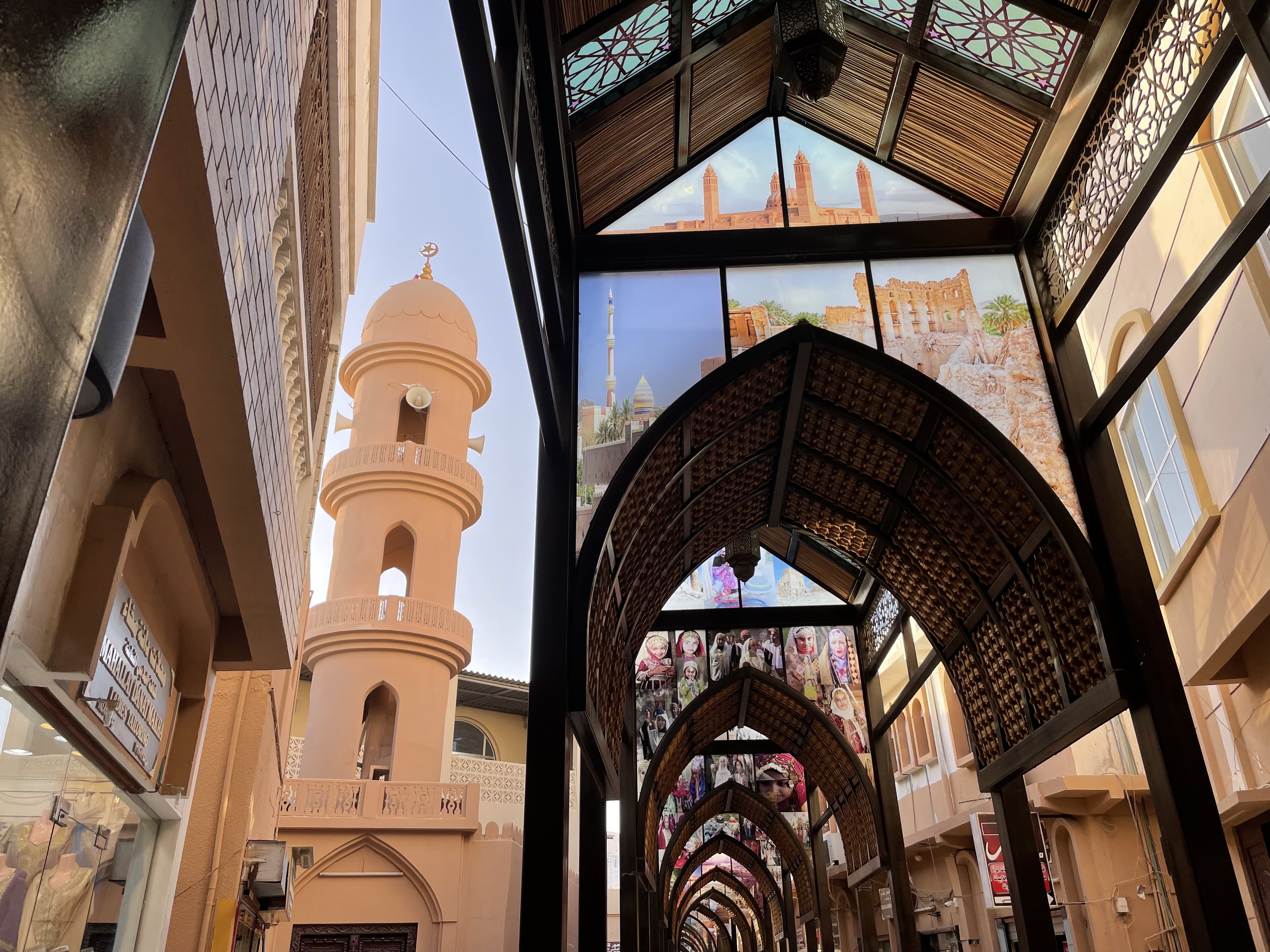 - Visiter la ville de Sour, son chantier de boutres et son souk : La ville est située au bord de l’océan et est réputée pour ses boutres, ces fameux bâteaux traditionnels omanais. Bien que les échoppes n’ont rien de très « local », nous avons trouvé le souk de Sour très plaisant avec ses arches et ses sortes de vitraux colorés. Petite précision pour vous Mesdames : bien qu’Oman soit un sultanat très tolérant, la plupart des femmes que j’ai croisées au Souk portait la burqa. Ce jour-là, je portais un T-Shirt noir, une longue jupe noire et j’avais voilé mes cheveux mais je me suis quand même sentie un peu dévisagée 😅