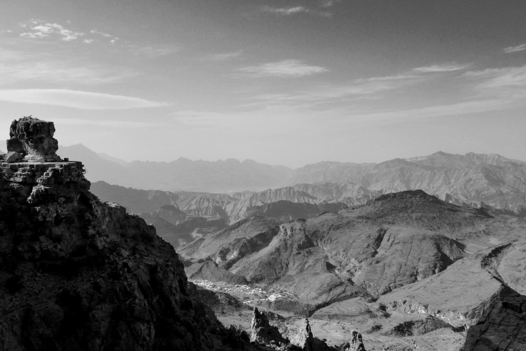 Nous reprenons la route en direction de notre prochaine étape, Nizwa. Sur le chemin, nous décidons de nous arrêter à Bahla, ville connue pour ses poteries et son fort, et de visiter le château de Jabreen, avant d’atteindre notre destination finale, les montagnes du Jebel Al Akhdhar. Pour atteindre ces montagnes, avoir un 4×4 est obligatoire. Bien que la route soit goudronnée et en très bon état, elle reste assez raide et les policiers présents au check-point ne laisseront passer que les moteurs suffisamment puissants pour atteindre le sommet.