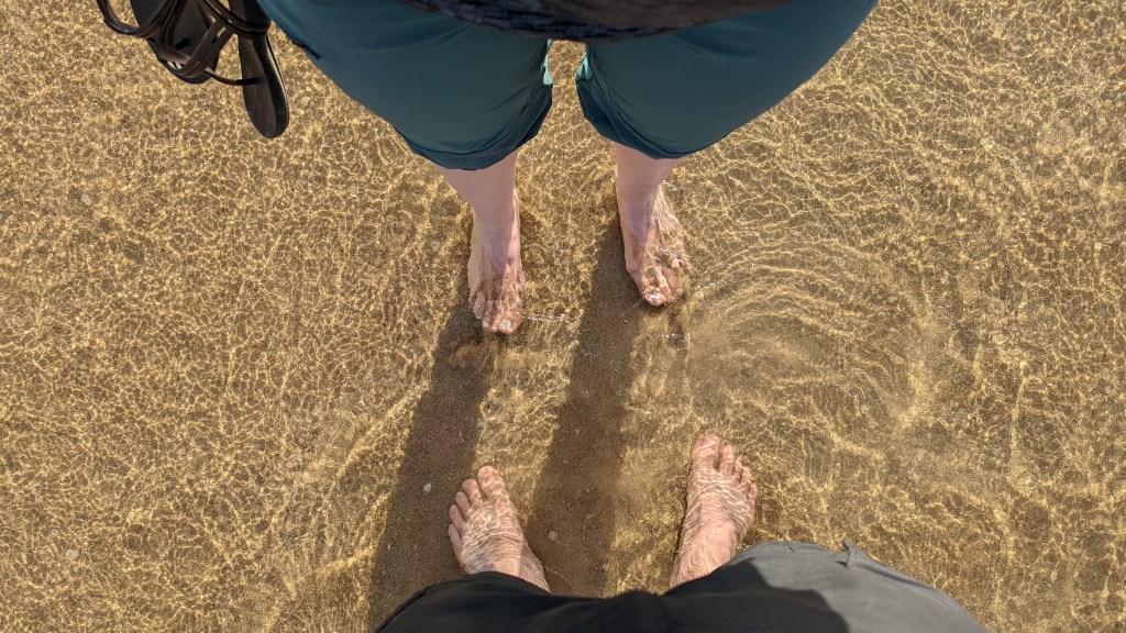 Nous n’avions rien de particulier de prévu aujourd’hui, alors on s’autorise une pause dans notre périple et on en profite pour faire une bonne grasse matinée (la dormeuse que je suis apprécie) 😁 Nous quittons ensuite la Guesthouse et prenons la direction d’une plage repérée sur Google Maps. La plage est pratiquement déserte, l’eau est transparente, turquoise, chaude… Bref, on pique une tête, on flâne… On profite du moment, tout simplement ! C’est ça aussi les vacances 😎