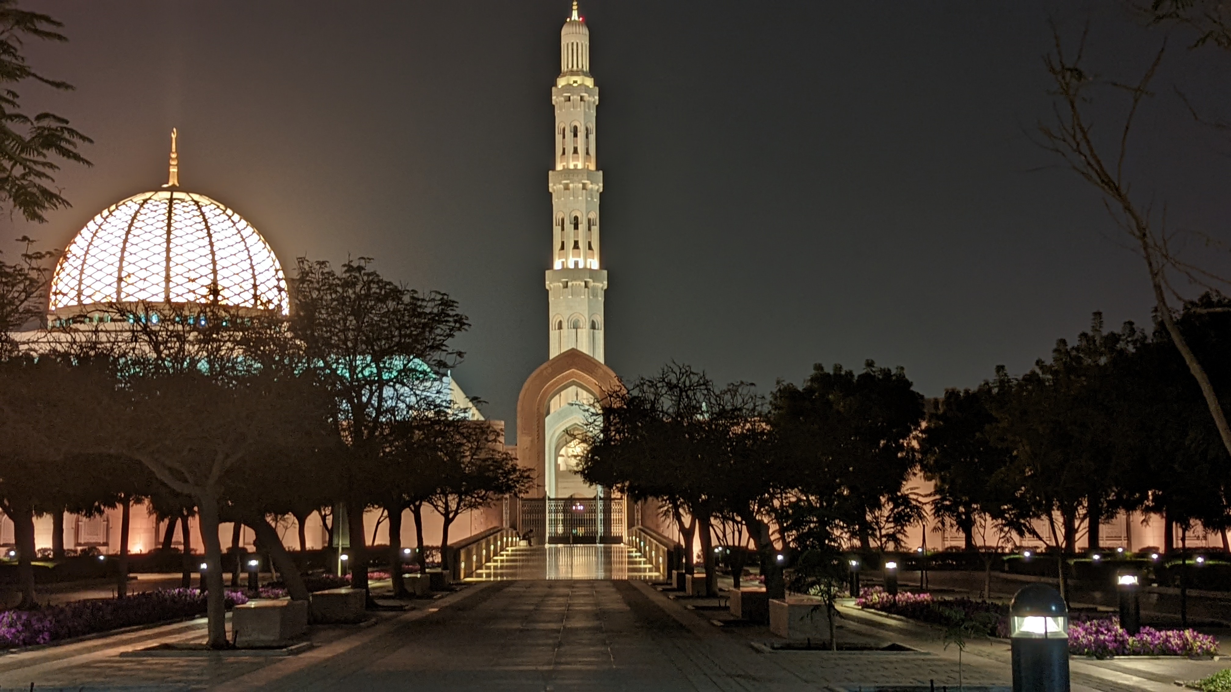 C’est bon, maintenant nous pouvons reprendre notre récit 😁 Comme son nom l’indique, il s’agit de la plus grande mosquée du pays. Les bâtiments sont tous en pierre blanche, les jardins sont splendides, les vitraux colorés… Dans la salle de prière des hommes, vous pourrez également observer un immense tapis persan tissé à la main, ainsi qu’un lustre magistral en cristaux Swarovski de 8m de diamètre et de 14m de haut. Bref, l’endroit est spectaculaire et on en prend (encore) pleins les yeux 🤩 On déambule entre les différentes allées et les nombreux bâtiments, je m’amuse avec mon appareil photo et l’architecture du lieu, et on s’imprègne de cette ambiance si reposante.