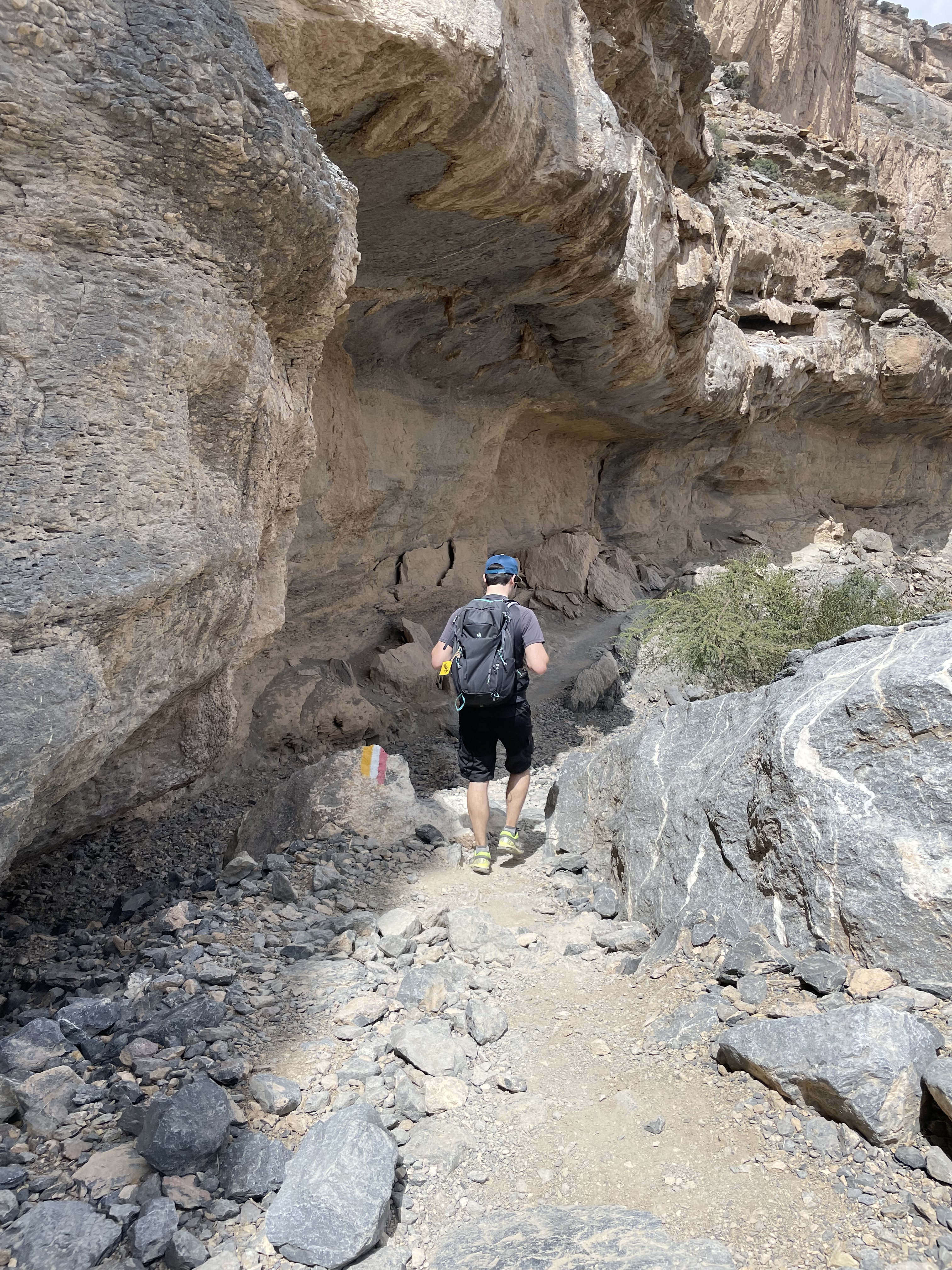 - Randonner sur la « Balcony Walk » : Dans un décor de Grand Canyon, vous longez le magnifique Canyon Wadi Ghul sur un total de 8 kms environ. Il s’agit ici d’une randonnée aller-retour, sans grande difficulté (dénivelé total de 200m environ), mais le chemin n’est pas du tout pavé donc pour les poussettes par exemple, c’est loupé. Lorsque vous pensez arriver au bout de la randonnée (vous arrivez au niveau d’un très grand balcon), levez les yeux et recherchez les marquages de randonnée (bandes jaune, blanche et rouge) car si vous le souhaitez, la rando continue et vous pouvez ainsi accéder à un petit lac (il me semble q’il y a également une cascade mais elle était à sec lors de notre venue). Pour les plus téméraires, il y a également une via ferrata. Pour y accéder, nous avons simplement suivi les indications de Google Maps. Vous arriverez sur une sorte de parking (vous ne pouvez pas vous tromper) et au bout du parking, la randonnée part sur la gauche. Pour cette excursion, nous vous conseillons d’emmener avec vous suffisamment d’eau, de quoi picniquer si c’est votre choix, un chapeau ou une casquette, de la crème solaire et de bonnes chaussures pour marcher (basket de sport ou chaussures de randonnée selon vos habitudes).
