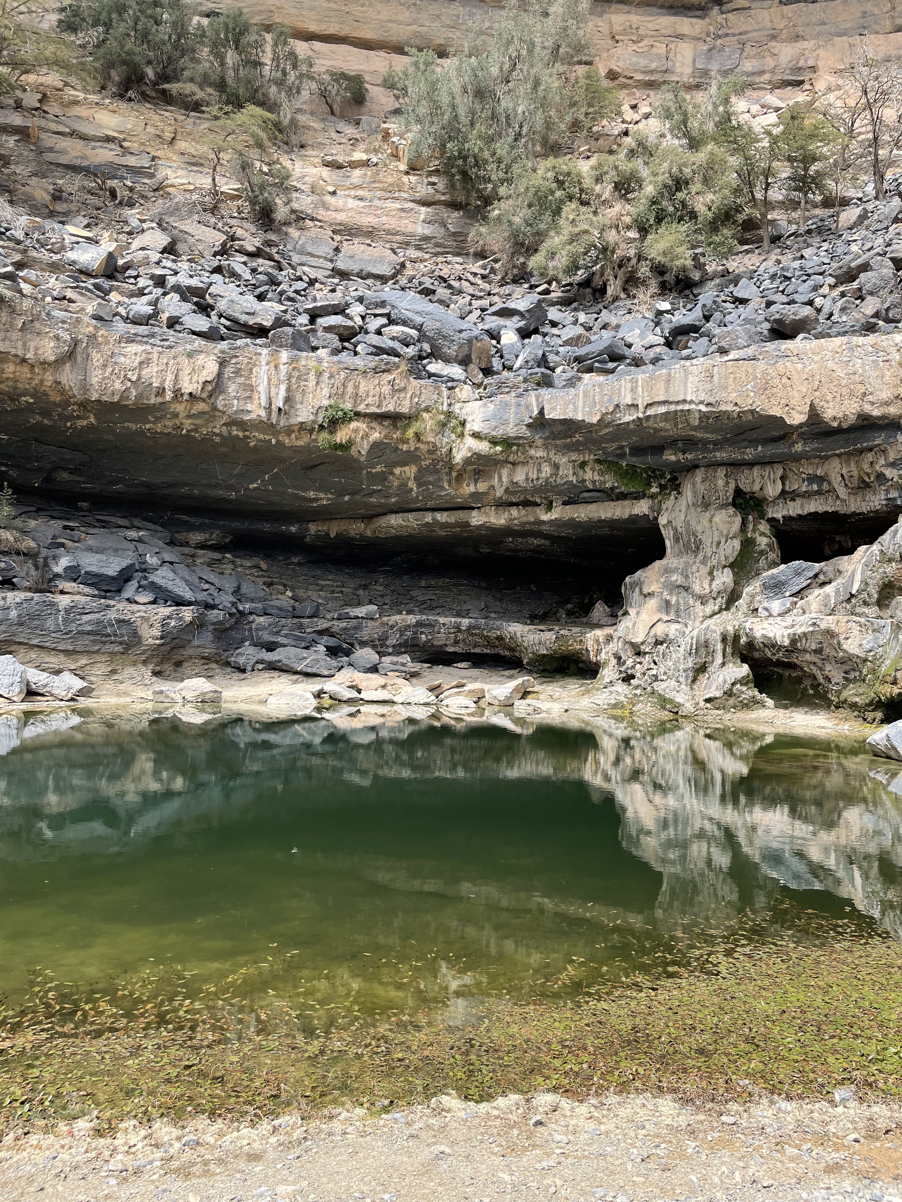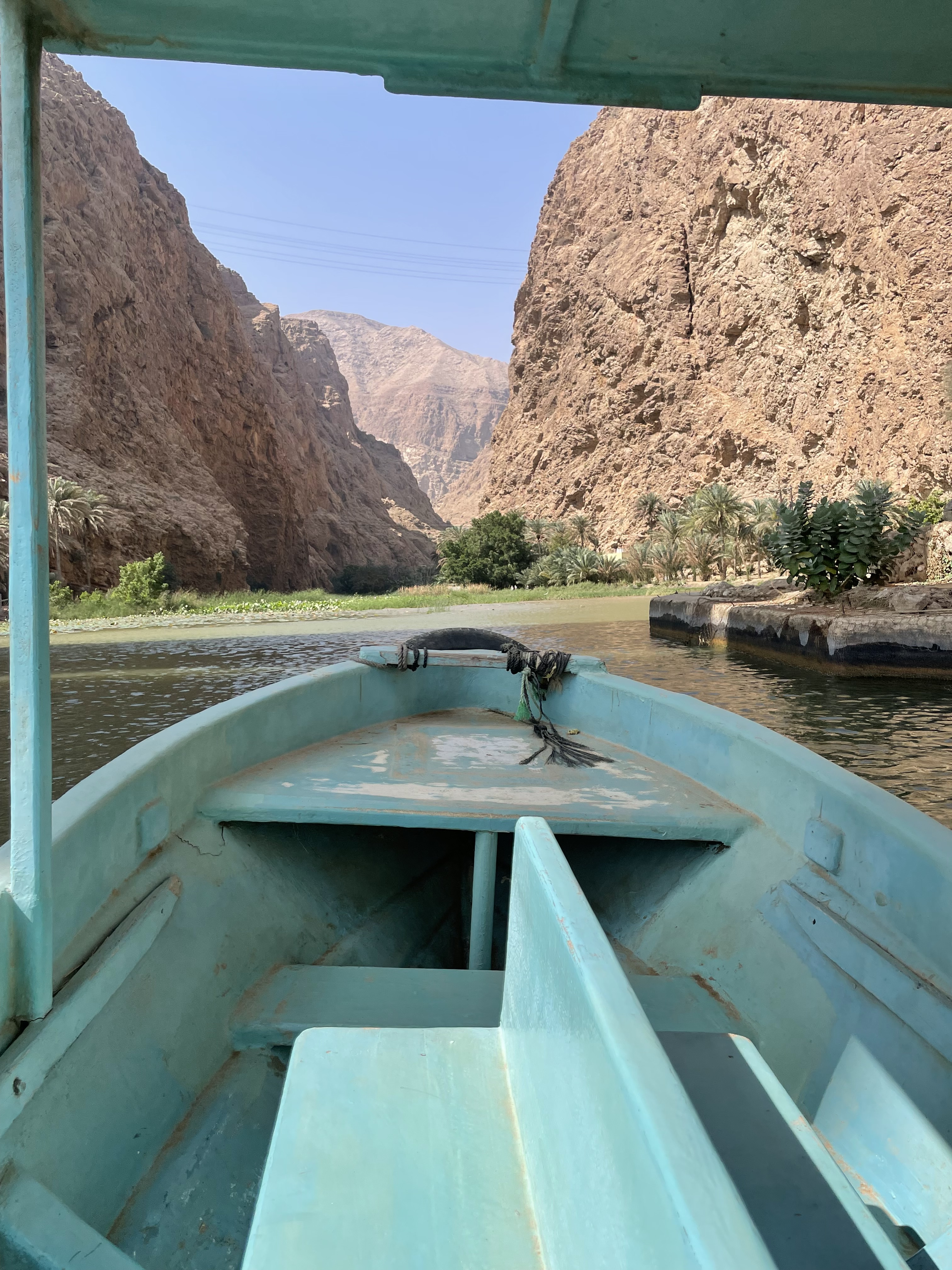 On continue notre programme « trempette » et on part pour le Wadi Shab. C’est clairement l’un de mes coups de coeur du voyage ❤️ A l’inverse de son cousin, le Wadi Bani Khalid, celui-ci n’est pas du tout aménagé et est donc plus « sauvage » et authentique. Une fois votre voiture garée, il faudra prendre une barque pour passer de l’autre côté de la rivière (2 OMR pour l’AR par personne de mémoire) et marcher encore 45 min avant d’atteindre les premiers bassins. Le chemin est facilement repérable et au pire, suivez les autres touristes ou les locaux 😉 Nous y passons la matinée puis nous reprenons la voiture (après avoir gentiment demandé aux chèvres de nous laisser passer 😆) pour aller se restaurer du côté de Fins.
