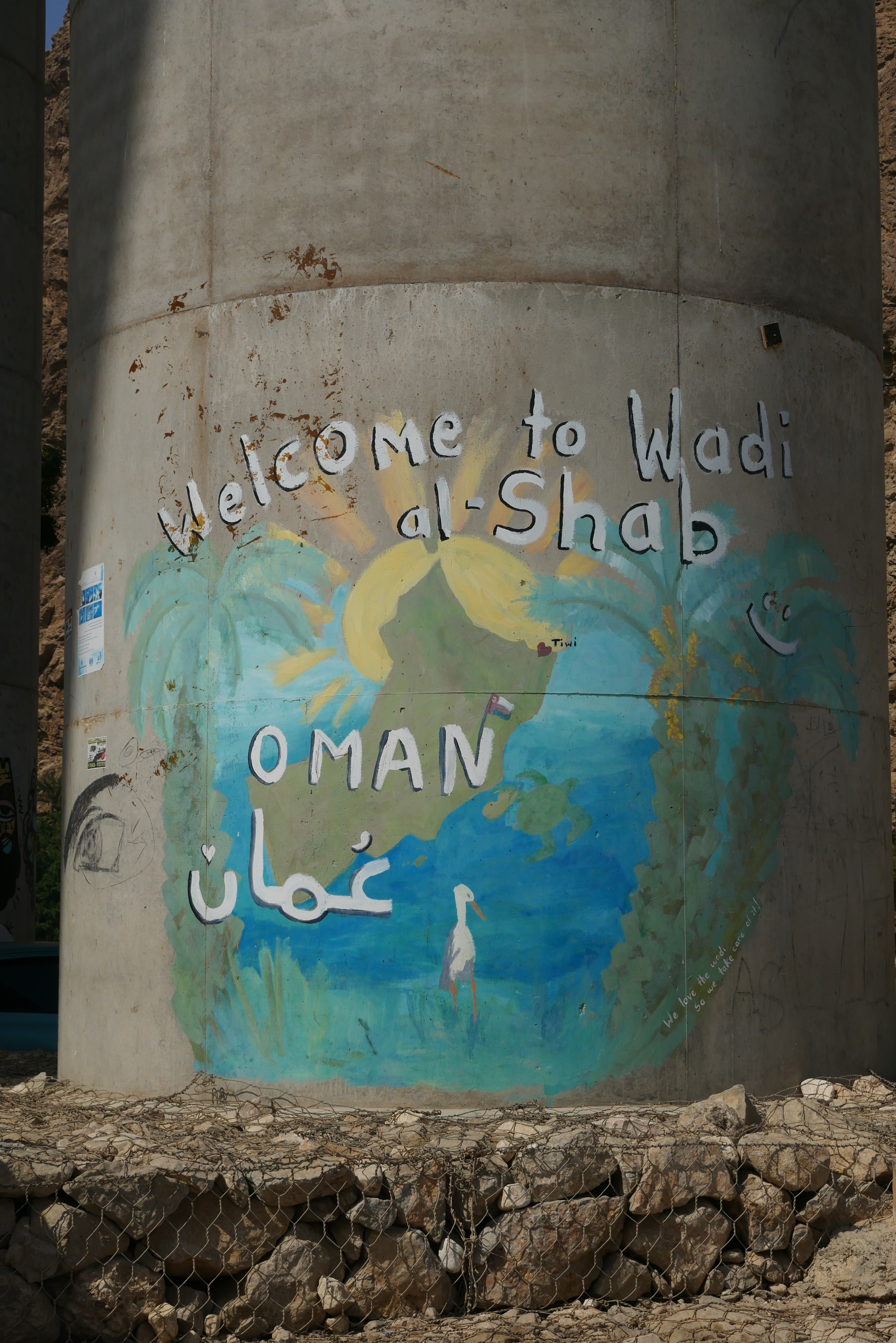 Aujourd’hui, on va faire trempette 🐳 Oh la la j’ai hâte !!! Ali (le responsable du camp dans le désert) nous ramène à l’entrée du désert et là, on aperçoit toute une installation sur les dunes. Il nous explique alors qu’aujourd’hui c’est le dernier « challenge » de l’année, que la moitié du pays sera là et que c’est quelque chose à voir. Le but : arriver en haut d’une immense dune (en 4X4, en quad ou en moto selon les catégories) le plus vite possible. Bon, on va d’abord faire plouf 💦 et on verra ensuite ce qu’on fait. On regonfle nos pneus dans un garage à la sortie du désert et direction le Wadi Bani Khalid.
